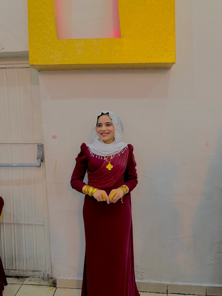Bordo renkli, yüksek yakalı ve uzun kollu. Etnik desenli, drapeli, rahat kesim kına elbisesi, düğünler için bohem tarzda uygun.