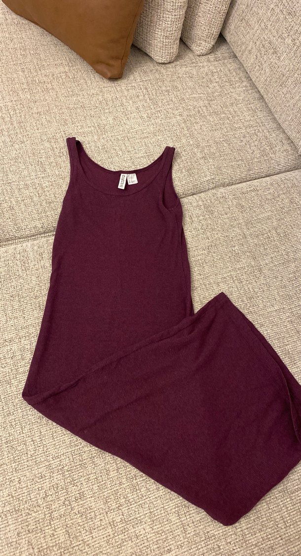 Bordo uzun triko elbise, askısız yaka ve bol kesimle yumuşak yün kumaştan üretilmiştir. Desensiz sade tasarımı günlük kullanım için rahat ve şıktır.