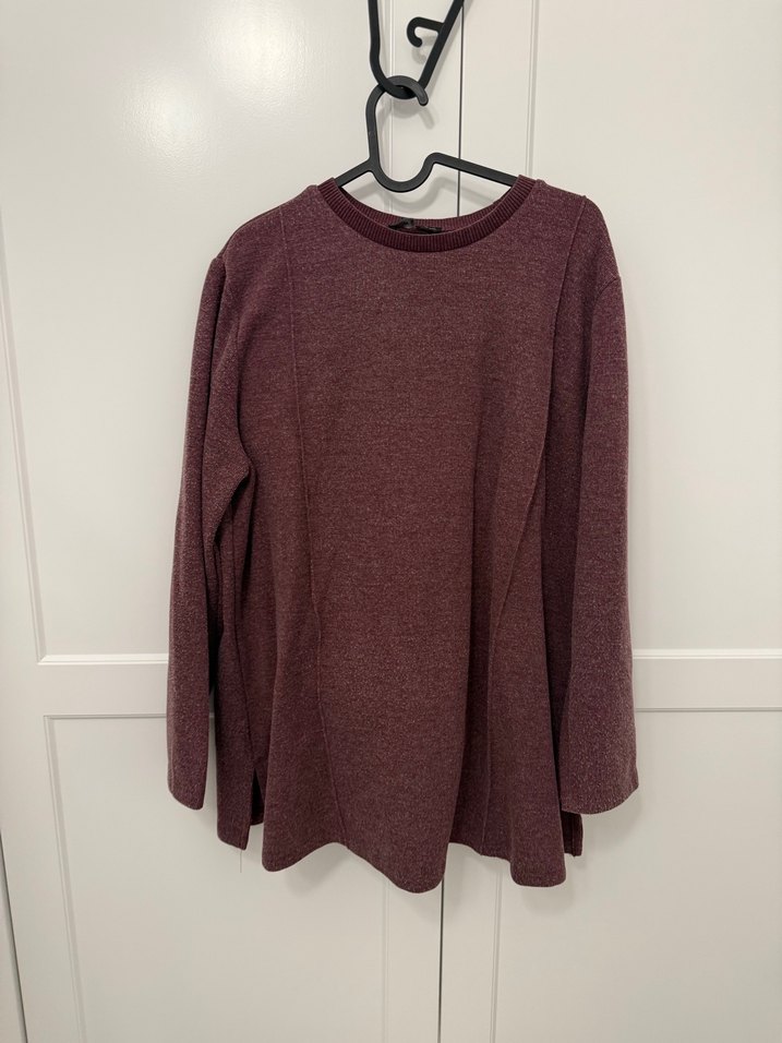 Bordo renkli, yuvarlak yaka ve uzun kollu kadın kazak. Triko kumaştan, bol kesim ve midi boyda, minimalist ve normcore tarzında, günlük kullanım için uygun. Pantolonu da mevcuttur. Takım olarak gönderilecektir