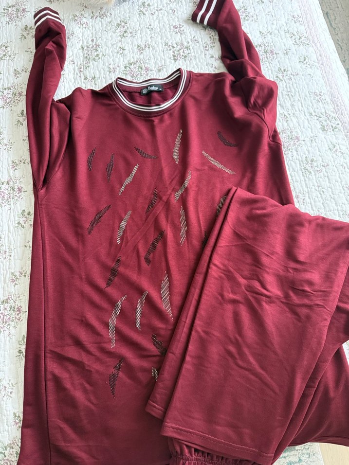 Bordo Uzun Kollu tunik takım