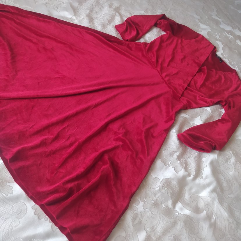 V yaka, uzun kollu, bordo renkte, drapeli ve uzun kesim elbise. Parlak ve desensiz kumaşıyla bohem ve rahat bir stil sunar.