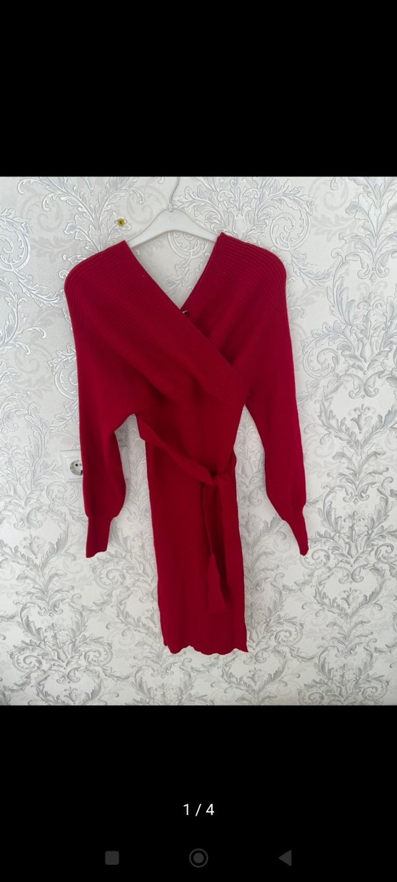 Bordo renkli, uzun kollu ve V yakalı triko elbise, modern klasik tarzda ve vücuda oturan kesime sahiptir. Günlük kullanım için uygundur.