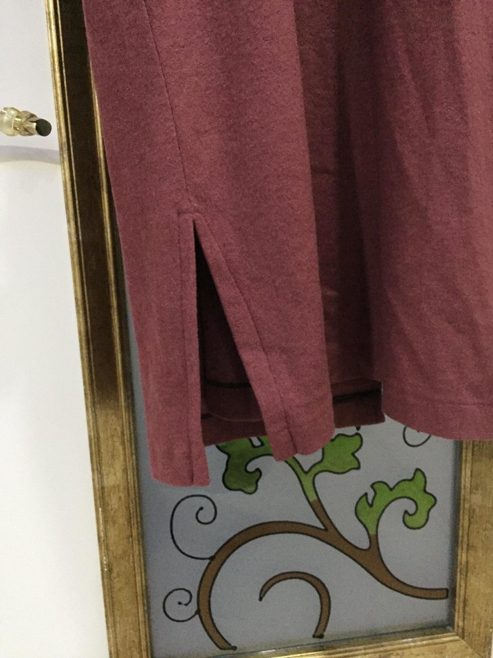 Bordo renkli, uzun kollu, salaş kesim Yan yırtmaçlı, yuvarlak yakalı ve rahat ve bohem tarzda günlük kullanım için uygun.manto