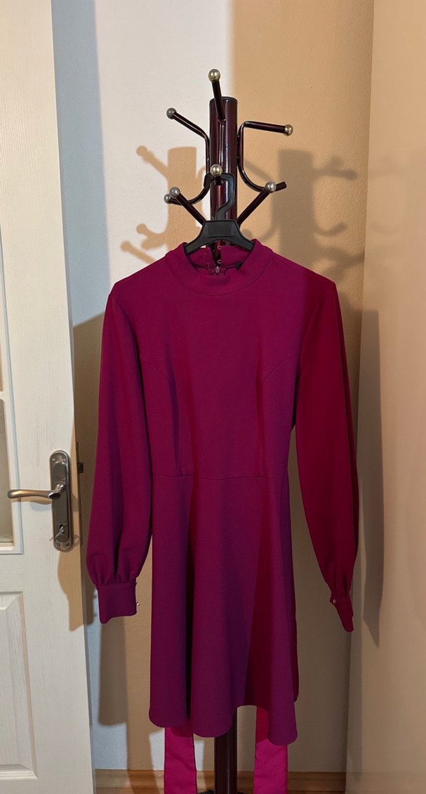Bordo Uzun Kollu Yüksek Yakalı Elbise