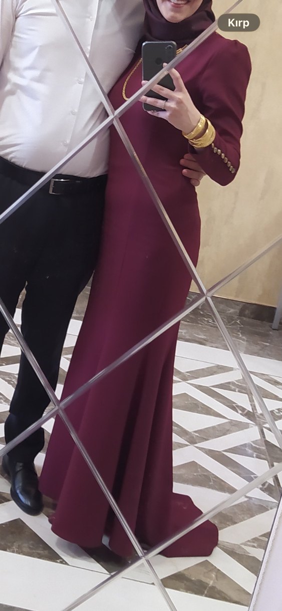 Bordo renkli, uzun hafif balık kuyruklu yumuşak kumaş abiye elbise 38/40 beden uygun