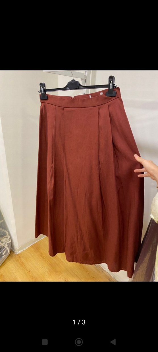 Bordo renkte, uzun ve salaş kesimli, dökümlü kadın eteği. İpeksi kumaştan, parlak görünümlü, bohem ve vintage tarzda. Günlük kullanıma uygun.