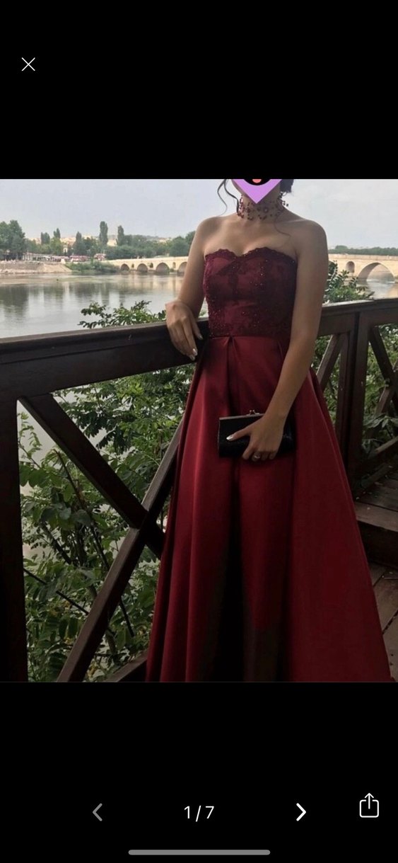 Bordo, straplez, vücuda oturan uzun abiye elbise, drapeli detaylarla modern klasik tarzda, düğün ve özel davetler için uygundur. Özel dikim arkası iple ayarlanabilir boyunluk hediye olarak gönderilecektir