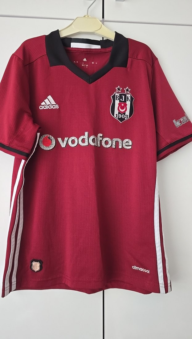 Bordo renkte, V yakalı, kısa kollu ve bol kesimli erkek forma. Sentetik kumaştan, düğmeli ve BJK ile Vodafone baskılı. Günlük kullanım için uygun.Bu bir çocuk formasıdır.6 yaşa uygundut ⚽
