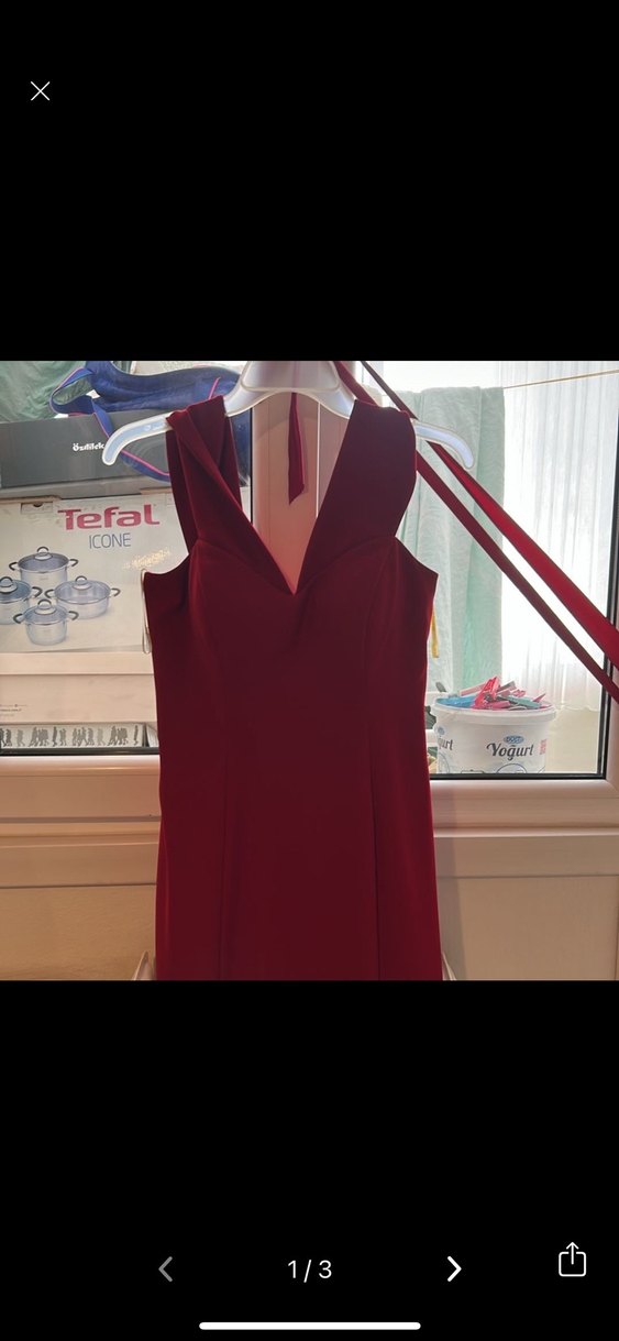 Bordo renkli, V yaka ve kolsuz uzun abiye elbise, drapeli detaylarıyla romantik akşamlar için uygundur.