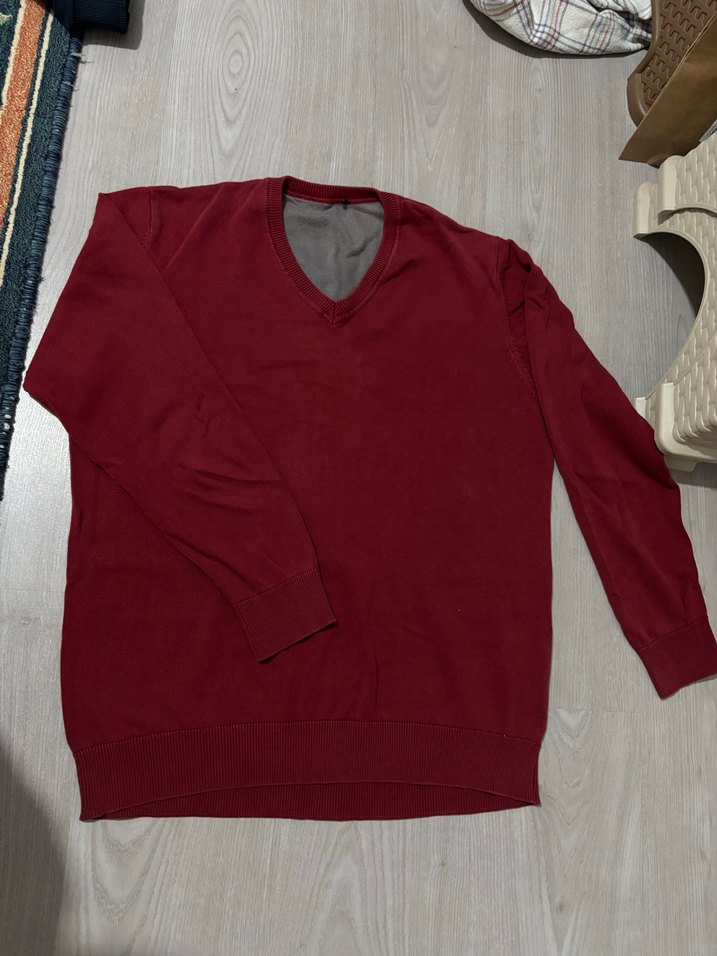 Bordo V Yaka Erkek Triko