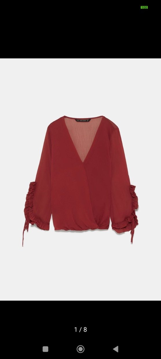 Bordo V Yaka Fırfırlı Kadın Bluz .Zara marka..