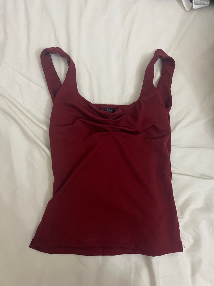 Bordo parlak renkte, V yakalı ve kolsuz, vücuda oturan kadın atlet. İpeksi kumaştan üretilmiş, romantik buluşmalar ve sokak modasına uygun sade ve şık tasarım.