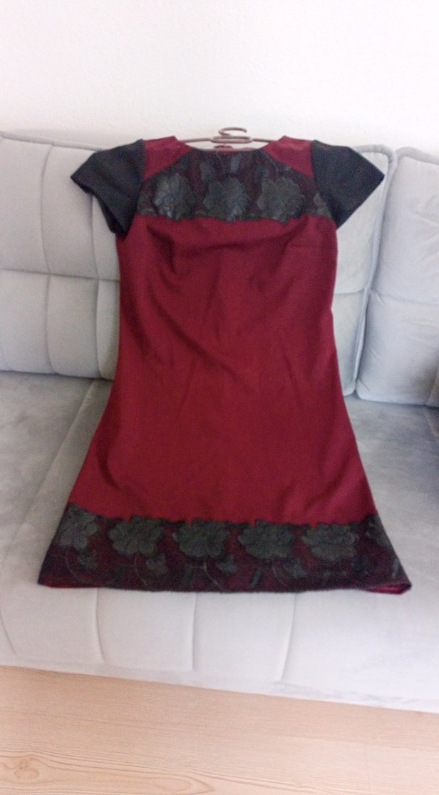 Bordo, kısa kollu, V yakalı ve dökümlü detaylı hamile tunik. Koyu çiçek desenleri ve midi boyuyla romantik akşamlar için uygundur.
