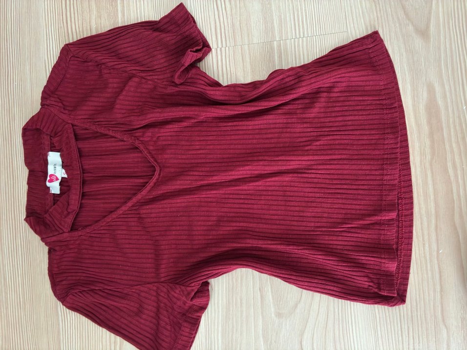 Bordo renk, V yaka ve kısa kollu, pilili detaylı, midi boy triko elbisedir. Yumuşak sentetik kumaştan yapılmıştır, gündelik kullanıma uygundur.
