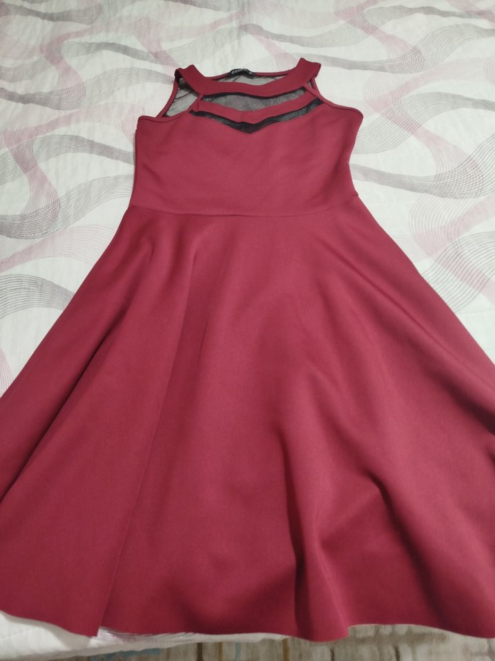 Bordo, v-yaka, kolsuz, drapeli detaylı, parlak kumaştan midi boy dar kesim gece elbisesi. Cesur gotik tarzda parti elbisesi.