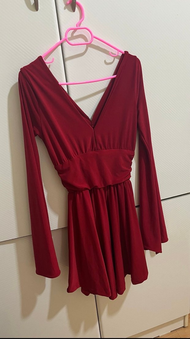 Bordo V Yaka Midi Kadın Elbise