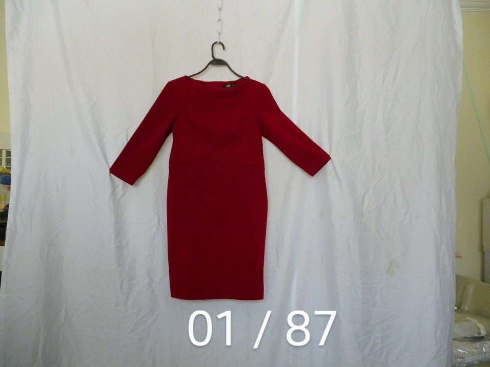 Bordo renkli, V yakalı, uzun kollu, triko kumaştan yapılmış, drapeli ve dar kesim midi elbise. Minimalist tasarımı ile ofis kullanımı için uygun. boy. 88cm. göğüs 43cm basen 48cm. kol uzunluğu 42cm arka fermauar. 35cm alt genişliği 48cm