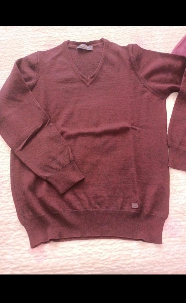 Bordo renkli, yumuşak yün kumaştan örülmüş, V yaka ve uzun kollu, bol kesim erkek kazak. Günlük sokak stili için uygundur. Kığılı marka kazak s beden