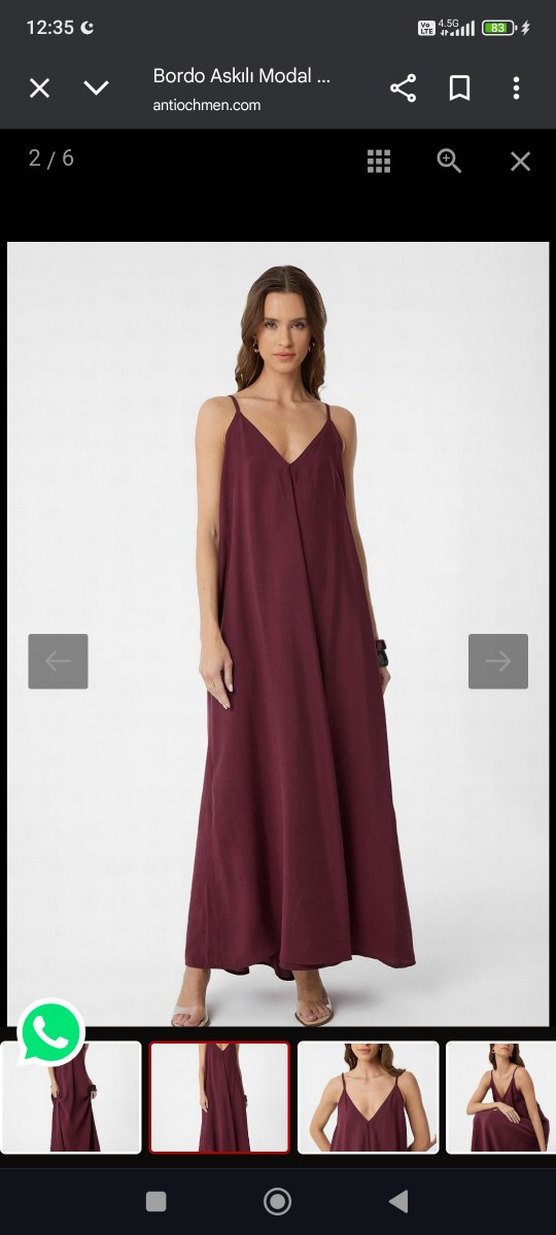 Bordo renginde, V yakalı ve salaş kesimli, drapeli uzun elbise. İpeksi dokusu ve kolsuz tasarımıyla romantik akşamlar için ideal.
