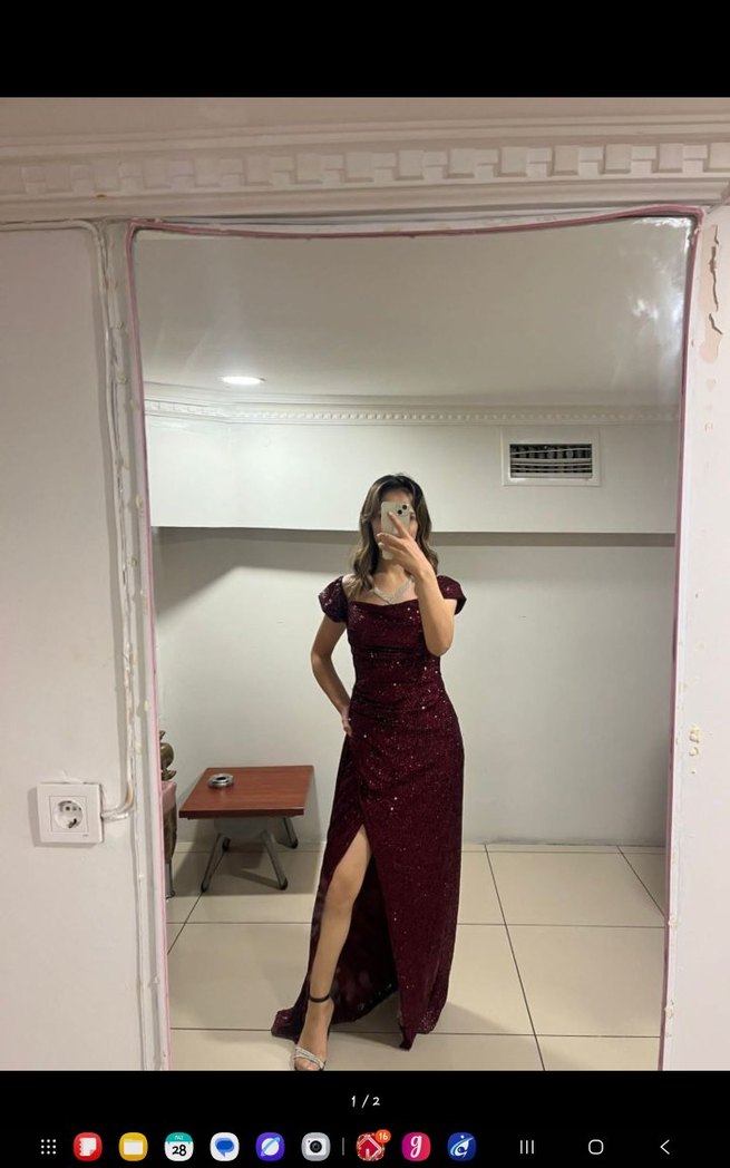 V yaka ve yırtmaçlı, bordo renkli, dar kesim. S 36 beden ile uyumludur, arkasından pens atılmıştır. fotoğrafta 46 kilo 160 boy ile giyilmiştir.