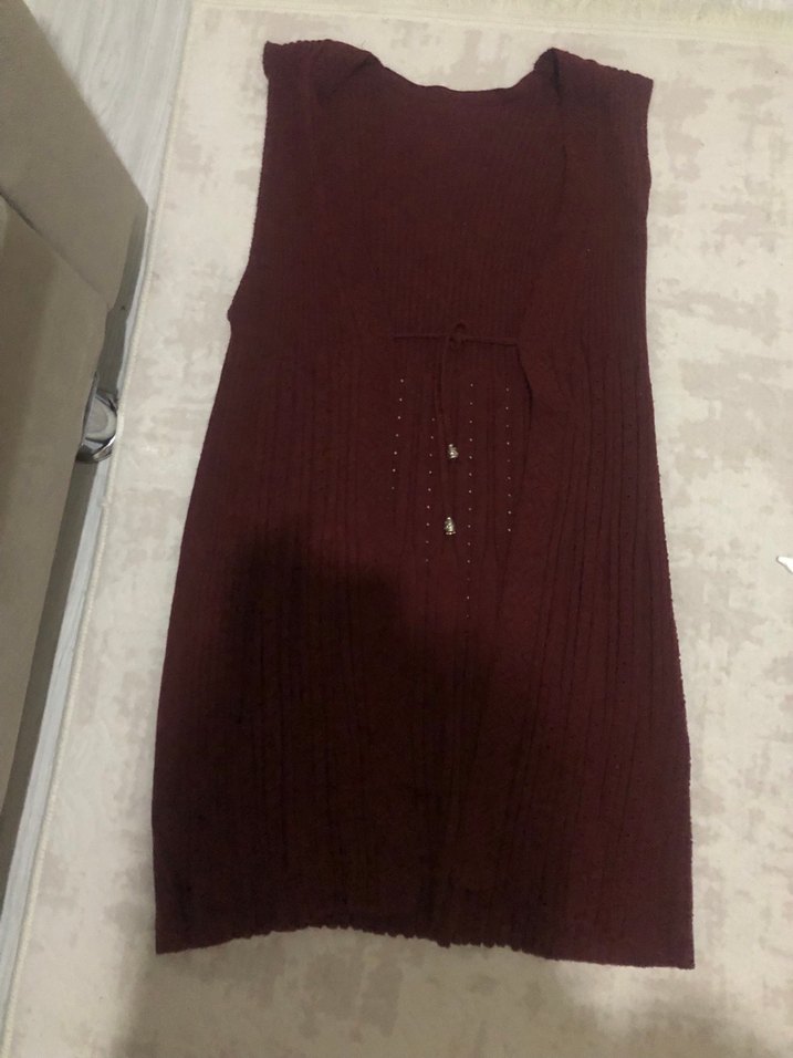 Bordo renk, V yaka, kolsuz ve triko kumaştan yapılmış, YELEK