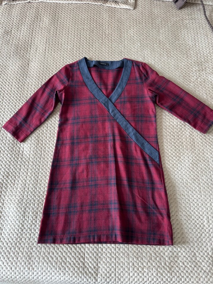 Bordo renkli, V yaka ve uzun kollu midi elbise. Yumuşak dokulu kumaştan, bol kesim ve kuşaklı detaylı, günlük rahat ve bohem tarzda.