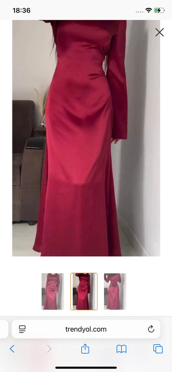 Bordo renkli, V yaka ve uzun kollu, drapeli uzun abiye elbise. Düzenli kesimli, parlak ve sade tasarımıyla düğünler için uygundur. ✨
