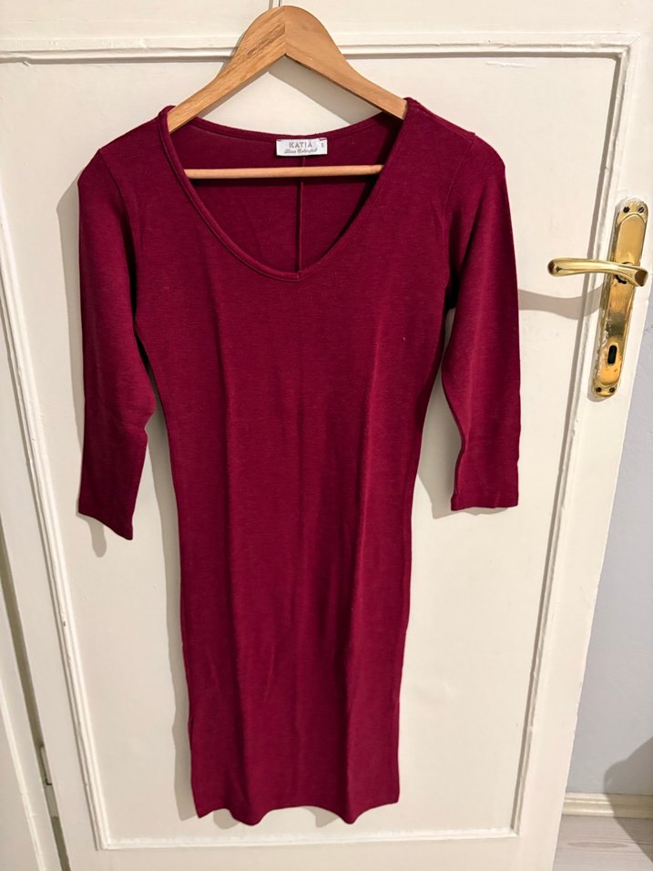 Bordo renk, V yaka ve uzun kollu, midi boy triko elbise. Yumuşak sentetik kumaştan yapılmış, rahat ve modern bir tasarıma sahip. Romantik akşamlar için uygun. ❤️