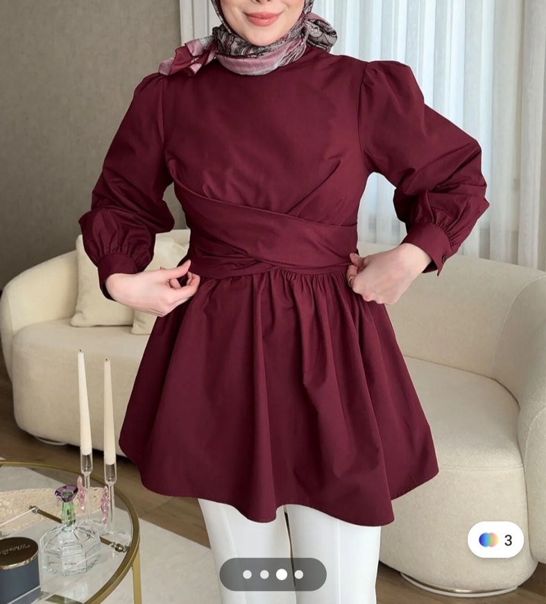 Bordo renkli, V yakalı, drapeli ve askılı kollu, normal boy midi tunik. Bohem tarzda, günlük kullanıma uygun.sadece iki kere kullanldı temizdir hiç bir kusuru yoktur. 800 liraya almıştım