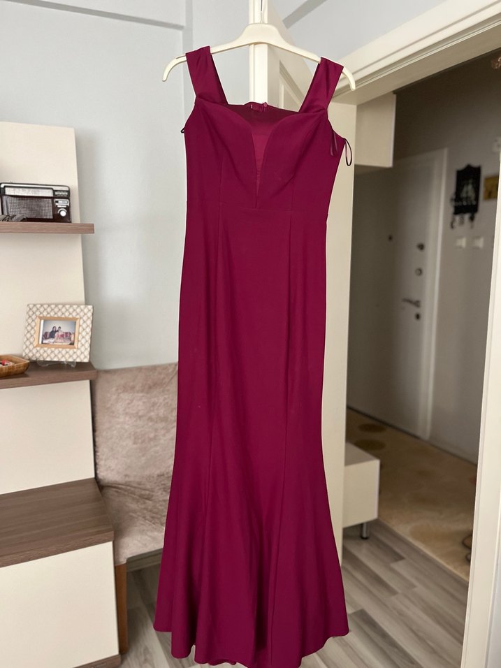 Bordo renkte, V yakalı ve drapeli tasarıma sahip, uzun ve kolsuz, klasik şıklıkta abiye elbise. Düğünler için uygun, modern klasik kesim. Ürün düğün için sadece bir kere giyilmiştir herhangi bir deformesi lekesi yırtığı yoktur sıfır ayarındadır bir daha giyilmeyeceği için satılmaktadır.