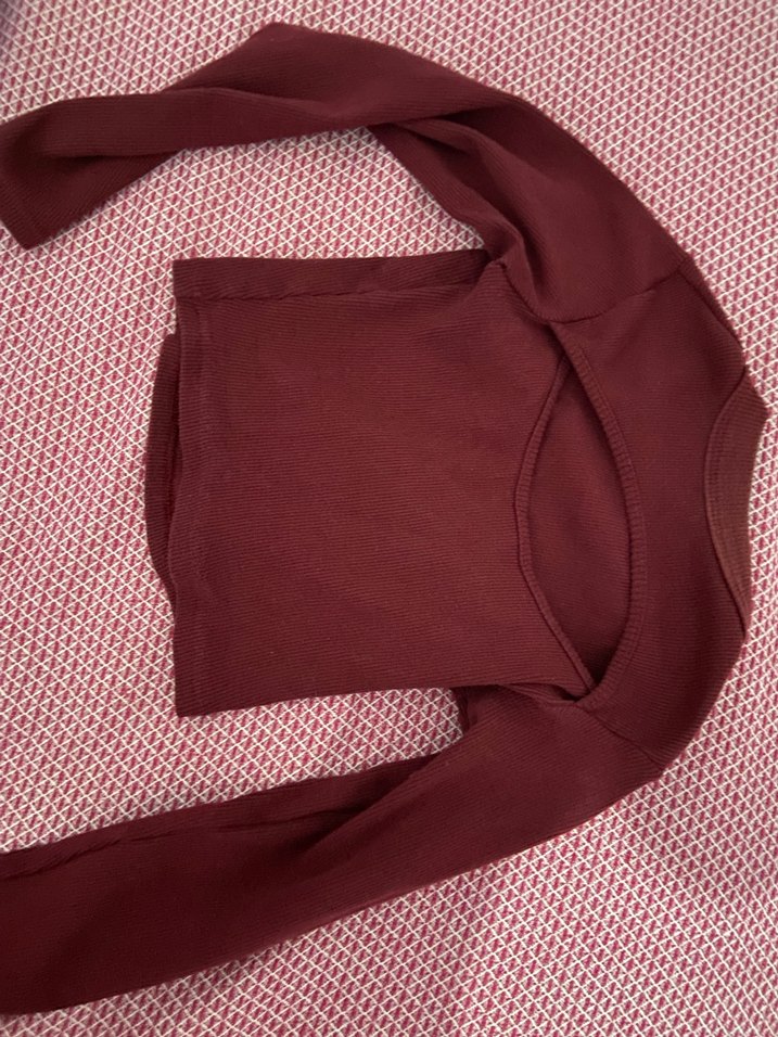 Bordo renkli, ince ve vücuda oturan kazak crop