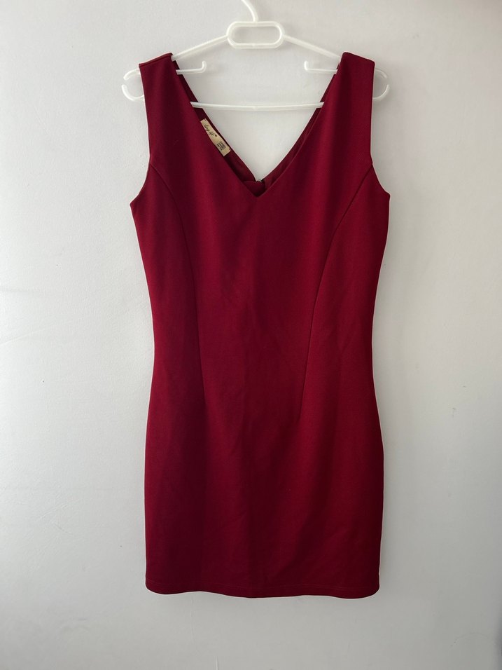 Bordo V Yakalı Midi Elbise
