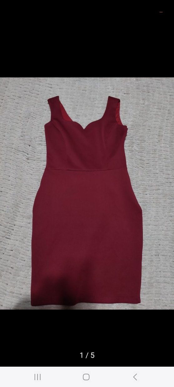 Bordo renk, V yakalı, kolsuz ve vücuda oturan midi boy elbise, modern klasik tarzıyla romantik akşamlar için şık ve sade bir seçenek sunar.