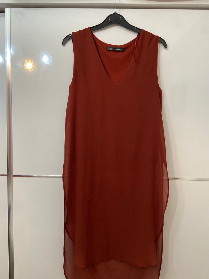 Bordo renkli, V yakalı, kolsuz midi elbise. Dökümlü ve bol kesim, ipeksi kumaştan, çağdaş minimalist tarzda günlük kullanıma uygun. ✨