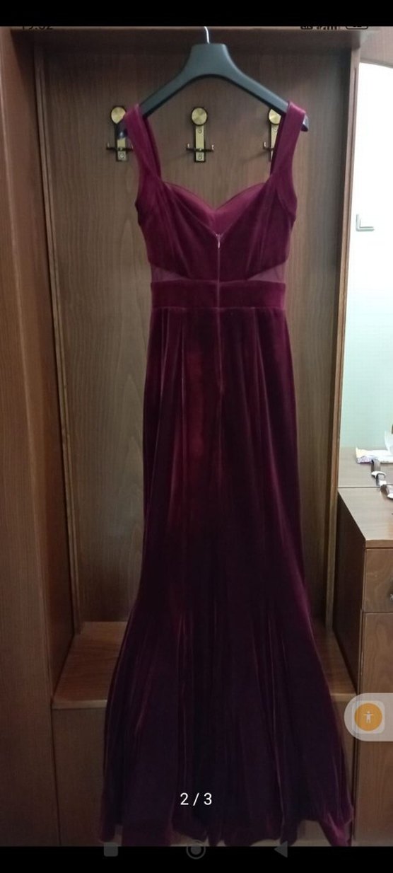 Bordo renkli, V yakalı, drapeli ve kolsuz uzun abiye elbise, klasik şıklığı modern dokunuşla sunar. 1 defa giyildi. cok kalitelidir.