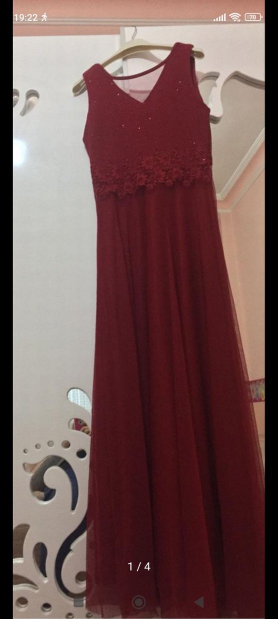 Bordo, kolsuz uzun elbise, v yaka ve drapeli detaylara sahip. Yumuşak sentetik kumaştan, klasik ve bohem tarzda, düğün için uygun. fakat ürün l beden ama ş ve M bedene çok daha rahat olur dar kesim dolap uygulamasından almıştım aldığım fiyata satıyorum alıcısına hayırlı olsun