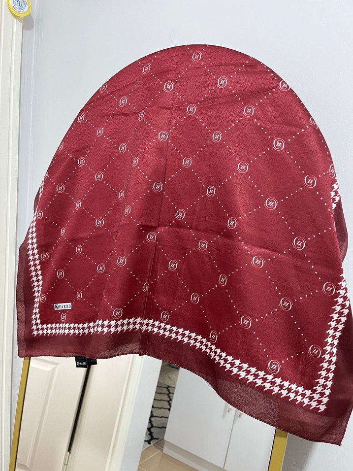 Yumuşak sentetik kumaştan, bordo renkli kadın şalı. Klasik Paris stili ve drape tasarıma sahiptir. Kaymaz yakmaz pamuk kumaş