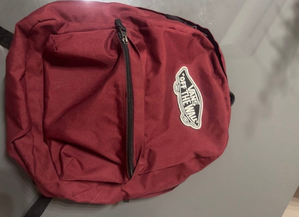 Bordo renkli Vans sırt çantası, fermuarlı ön cebi ve baskılı logosu ile günlük kullanıma uygun sentetik kumaştan üretilmiştir.