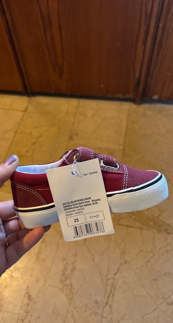 Bordo renkli, parlak kauçuk tabanlı, baskılı desenli erkek çocuk sneakers. Kolay kullanım için cırtcırtlı kapanışlıdır. Trend sokak stili için uygundur.