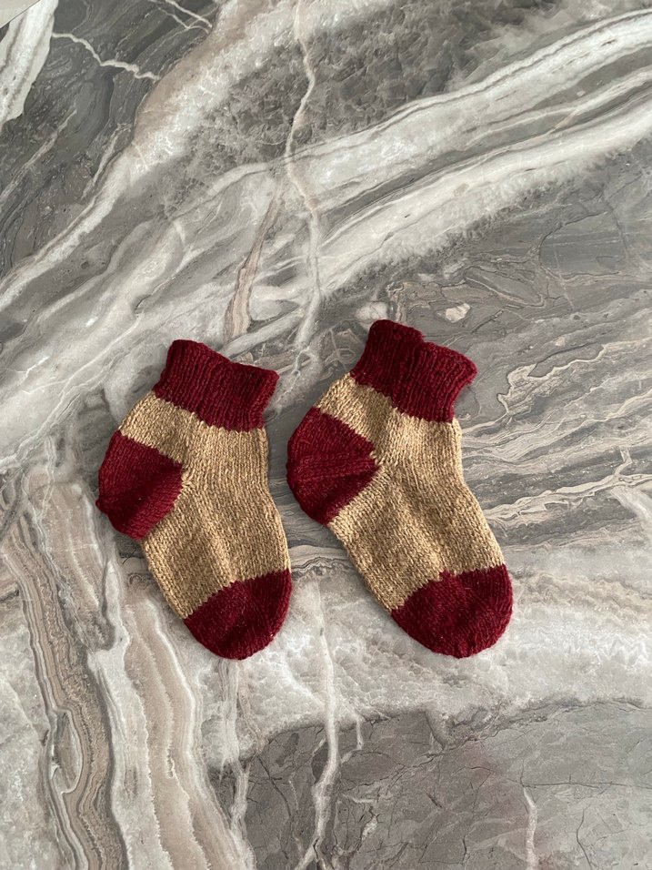 Bu çocuk çorapları bordo ve bej renk kombinasyonuna sahiptir, yumuşak örgü dokuludur. Rahat kullanım sağlar.