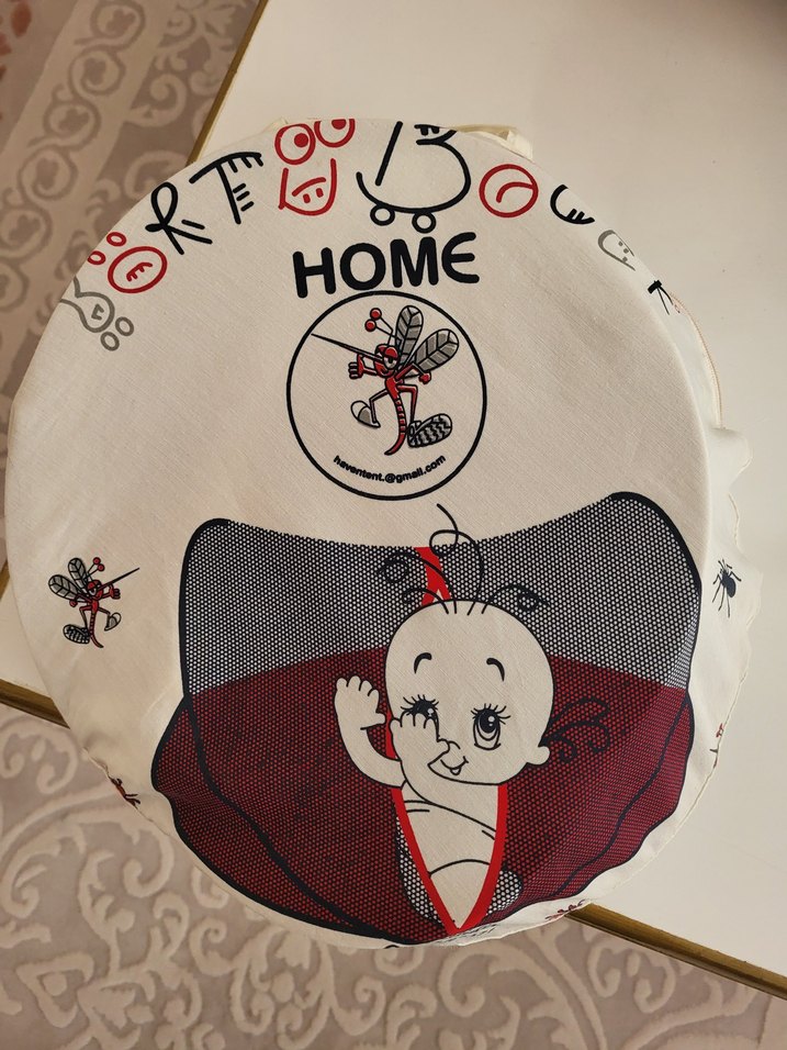 Yumuşak sentetik kumaştan üretilmiş bordo ve gri renklerde, baskılı desenli çocuk yatığı. Üzerinde "HOME" yazısı bulunur. ️