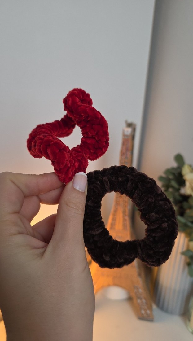 Bordo ve kahve renklerde, yumuşak ve sıcak dokulu kumaştan yapılmış iki adet elastik saç tokası seti, rahat ve gotik tarzlar için uygundur.