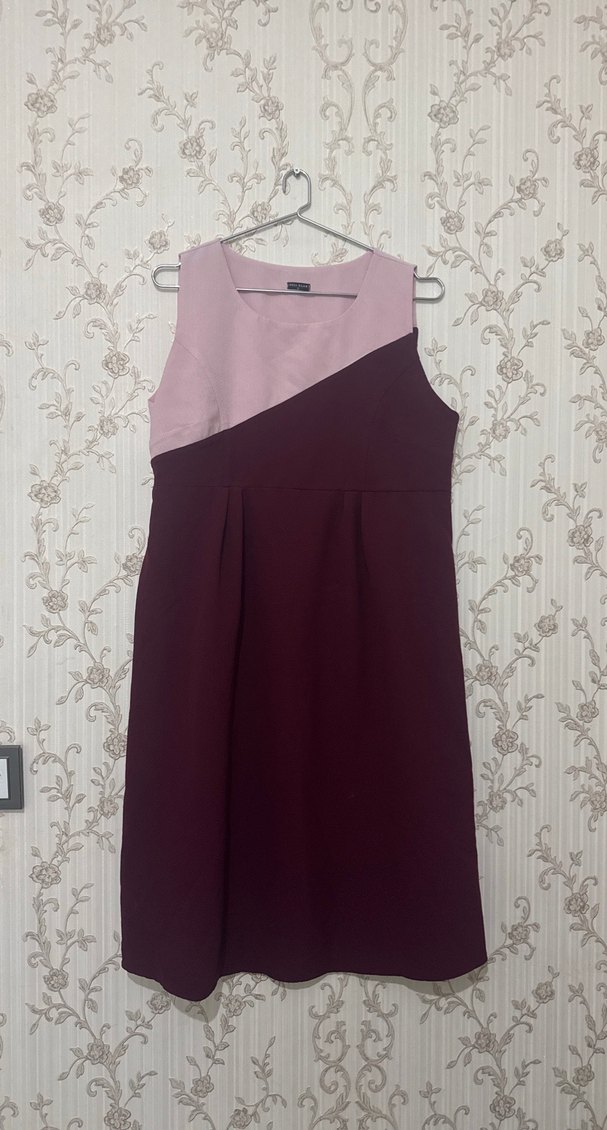 Elbise Boy uzunluğu:100/ En uzunluğu:42 Bordo ve pudra renkli, kolsuz, drapeli hamile midi elbise, yumuşak sentetik kumaştan, normal kesim, ofis kullanımı için uygun.