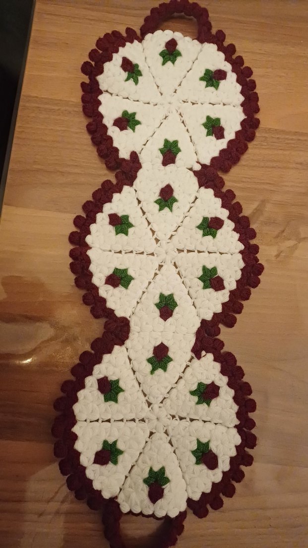 Bordo ve yeşil detaylı el yapımı dantel örtü