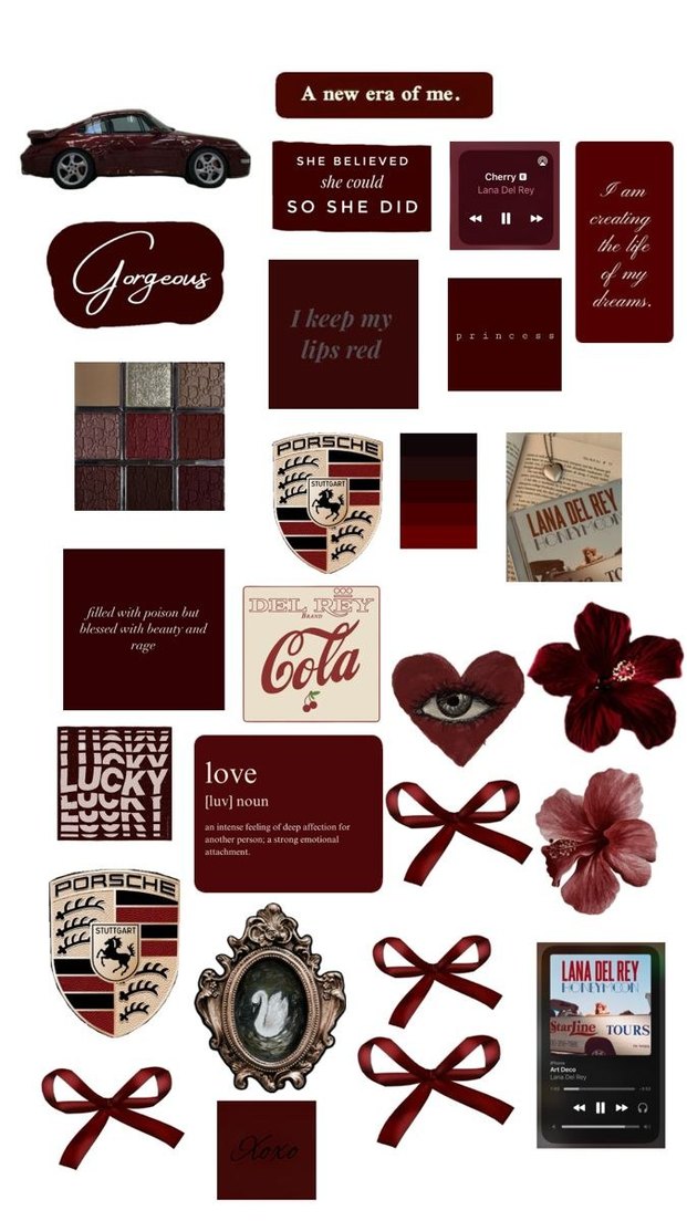 Parlak bordo kağıt üzeri vintage ve bohem desenler, ilham verici yazılar ve retro öğeler içerir. Günlük kullanım için bol kesim, kısa boy tasarımlar. Sticker