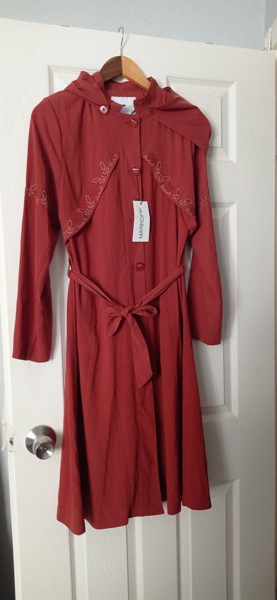 Bordo renkli, nakışlı vintage tarzda uzun kadın elbisesi. Bol kesim ve uzun kollu, bele bağlanan kemer detaylı bohem tarzda.