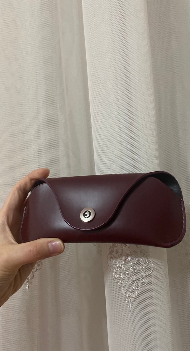 Koyu bordo renkli, tokalı vintage tarzda kadın gözlük kabı. Minimalist ve klasik tasarım. ️