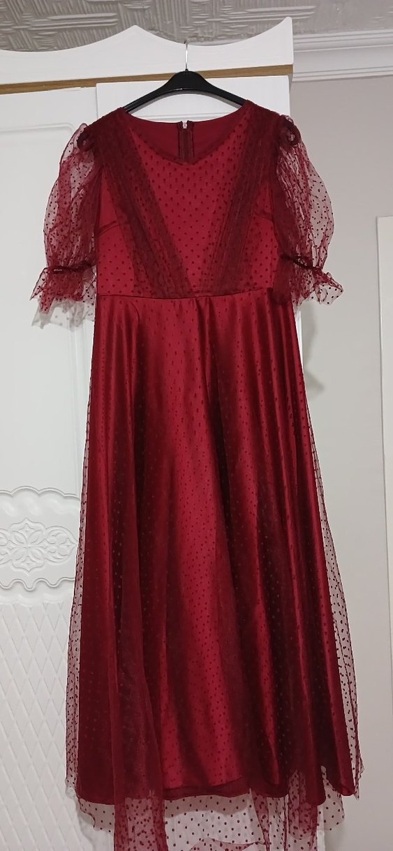 Bordo Vintage Uzun Elbise özel dikim 38 beden