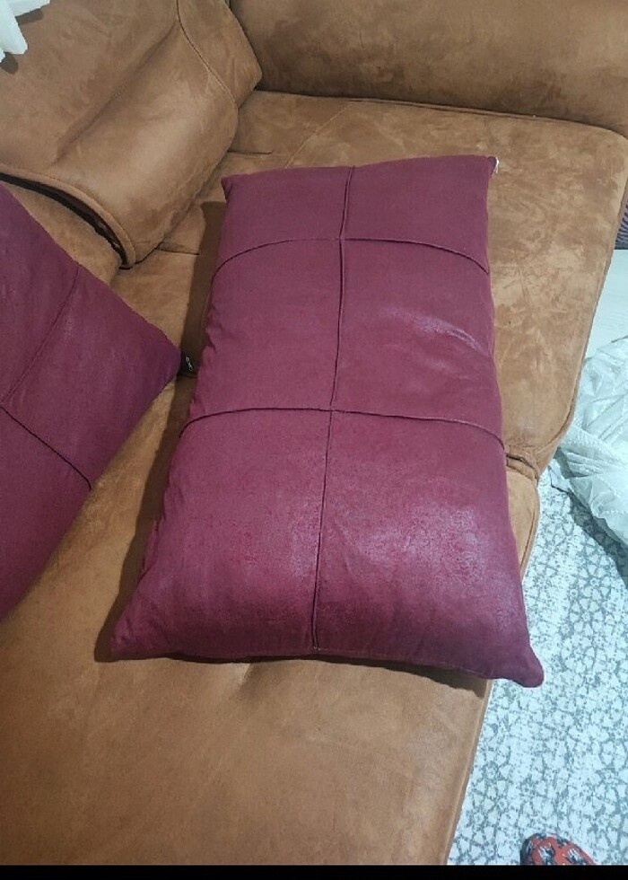 Bordo , Vişne çürüğü renklerinde 90x50 boylarında iki tane kırlent Ürünün boyutu fazla olduğundan elden alınması gerekebilri