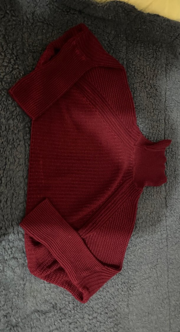 Bordo renkli, yarım balıkçı yaka ve uzun kollu, vücuda oturan örgü kadın kazak. Rahat ve günlük kullanıma uygun.